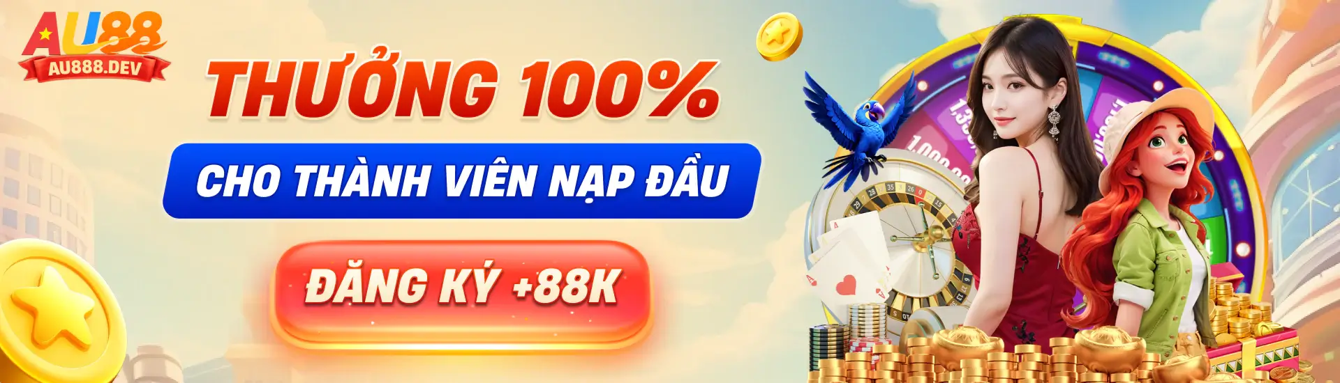 Đăng ký tài khoản mới tại Nhà cái AU88, người chơi nhận ngay 88K miễn phí để trải nghiệm các trò chơi. Chương trình áp dụng cho tất cả thành viên mới, không yêu cầu nạp tiền.
